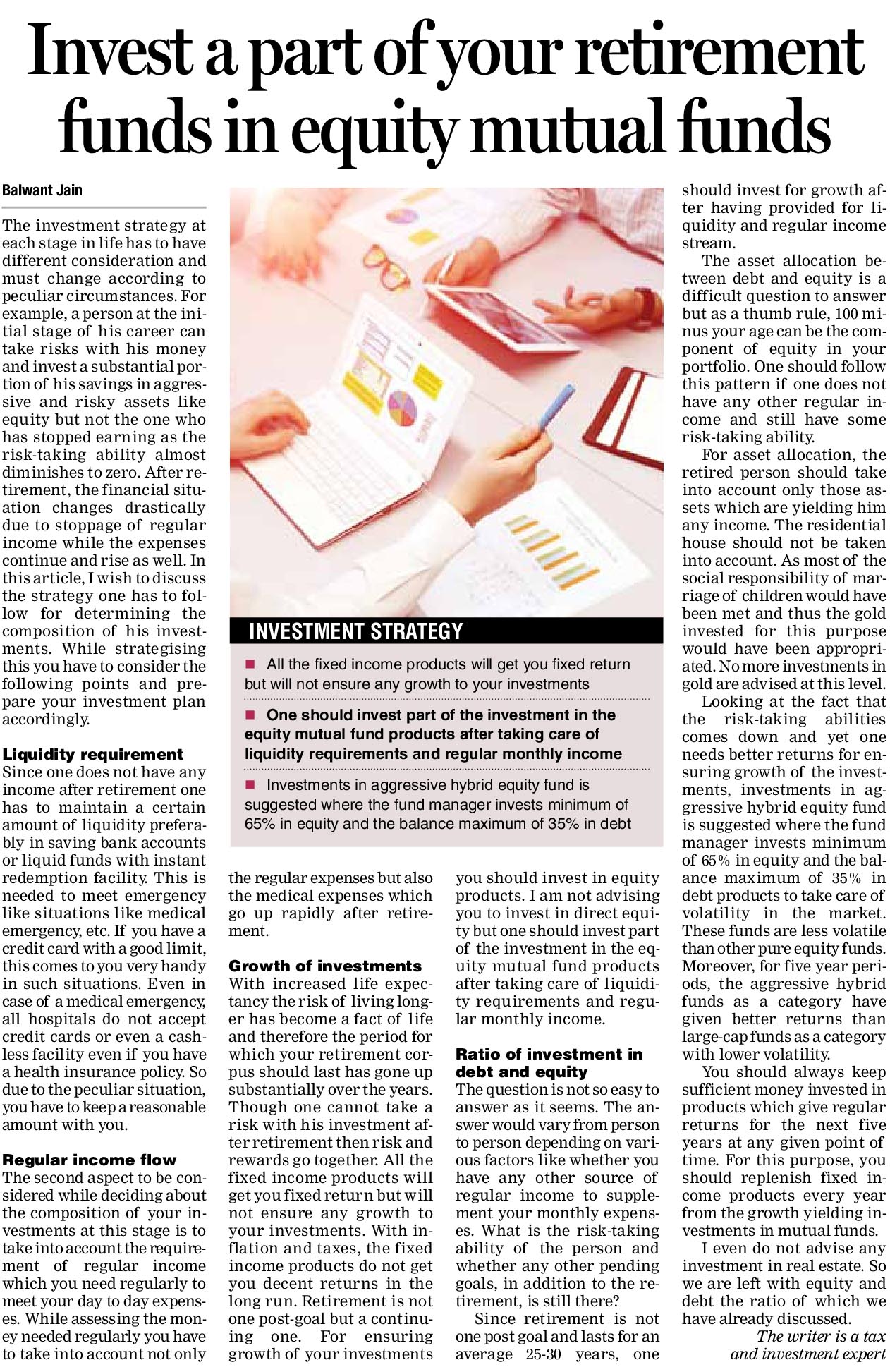 Mutual Funds - Invest A Part Of Your Retirement Funds In Equity Mutual Funds